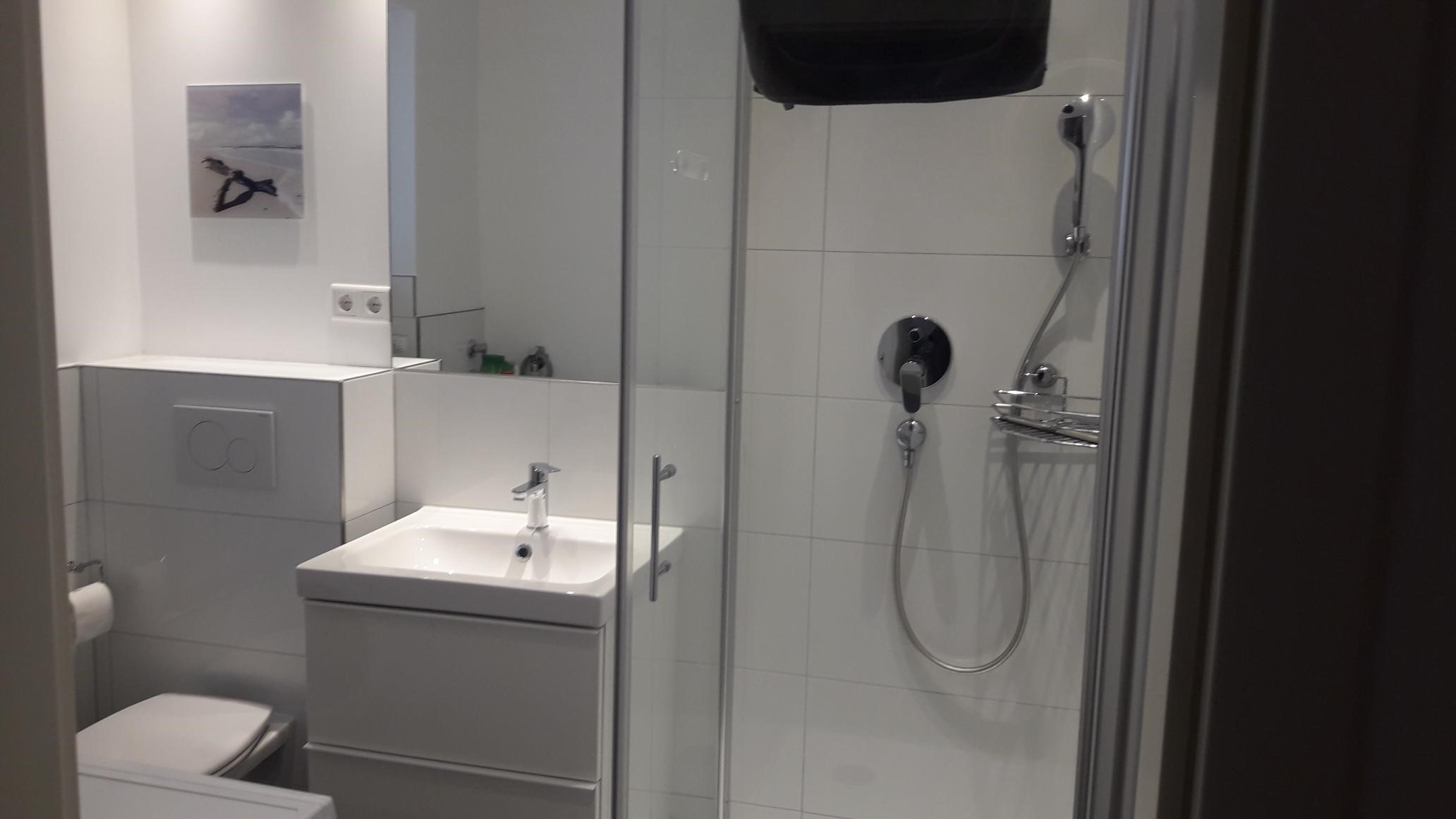 Attraktives, modern eingerichtetes 1- Zimmer Apartment im Erdgeschoss. Das Bett hat eine komfortable Breite von 1,40 m. Im Wohnbereich findet sich ein Sofa mit einem Flachbildfernseher. In der Küche finden sich alle Küchenuntensilien für den täglichen Bedarf ebenso eine Mikrowelle und diverse andere Elektrogeräte. Waschmaschine und Trockner komplettieren die Ausstattung. Der Badbereich ist in kühler avantgardistischer Optik in weiß gehalten.